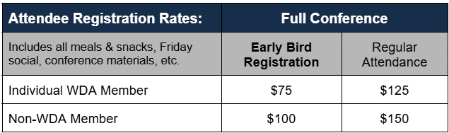 Whether you are attending in person or virtually, registration rates are the same to allow for maximum attendee flexibility and a variety of participation options. Many sessions including all general/keynote sessions, will be live-streamed, recorded and available for later viewing.